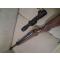 Bronzage excellent et crosse bois sans coups. Canon fixe, levier d'armement sous canon. Rail 11mm, organe de visée fluorescent. Longueur environ 1m10, poids : 3Kg100.