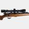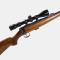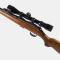 Cette carabine de 1978 est équipée d'une détente directe et d'un canon fileté au pas de 1/2x20 UNF avec sa bague de protection. Le guidon est présent, toutefois la hausse d'origine est manquante. L'ensemble est surmonté d'une lunette vintage Deerfield 3-9x40 montée sur des colliers CZ bas en acier (25,4 mm).
