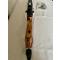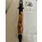 Quelques traces d'usage et d'autocollants d'anciennes compétitions sur le vernis de la crosse.