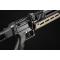 Une poignée pistolet ergonomique en polymère à l'arrière du pontet vient assurer la prise en main. La poignée est maintenue par une vis et pourra être remplacée par toute autre poignée compatible avec les plateformes AR-15.