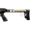 La crosse est en matière synthétique résistante, de finition noire, avec le garde main et le busc en coloris désert.