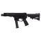 Boîtier inférieur en aluminium 7075-T6 forgé et anodisé dur, conçu spécifiquement pour accueillir des chargeurs de type Glock® 9 mm. Assemblé avec un kit MOE PSA comprenant une poignée Magpul, une détente EPT, un tube de buffer Mil-Spec 6 positions, et une brace ajustable H&R HAR-15.