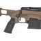 Châssis MDT LSS XL traitement Cerakote FDE.Canon lourd black mat acier carbone fileté 5/8X24. Crosse ajourée unique réglable en longueur, busc réglable. Détente Accu Trigger personnalisable de 1,5 à 4 lb.Rail 20 MOA EGW. Chargeur standard AICS. Frein de bouche.