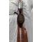 Crosse : bois de belle qualité, quadrillage net, vernis soigné, plaque gravée d’un cerf sous la poignée de crosse.