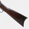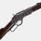 Carabine Winchester 1873 Cal. 44 WCF, patine gris/brun avec perte de finition et quelques traces d'oxydations, mécanisme bon et bien ajusté, canon en état correct avec rayures visibles et piqûres.