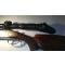 Crosse en dos de cochon en bois de noyer veiné + lunette SCHMIDT et Bender en Zénith en 1,1-4-24. a réticule