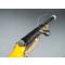 Crosse en bois verni, canon et mécanisme en métal peint en noir. Bretelle rose en plastique, le capuchon du canon pour sa remise est attaché par un fil de pêche. Jouet de collection des années 60/70 en très bel état.