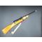 Très beau fusil d'enfant état neuf (il y a encore le papier sur la bretelle et l'étiquette de prix sur la crosse). Il tire des fléchettes à ventouses ou des boulettes.