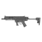 Sa **crosse pliable est fixée de manière permanente**, portant la **longueur totale à 60,5 cm**, en conformité avec la réglementation française. Son **garde-main M-LOK** permet l'ajout d'accessoires personnalisés, tandis que sa compatibilité avec les **chargeurs Glock 17 et Sig Sauer P320** via un adaptateur fixe en fait une arme très polyvalente.