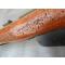 L’état général est moyen. Le bois présente des traces d’attaque par la vrillette. Les pièces métalliques ont été peintes en noir sur une oxydation antérieure. L’intérieur du canon affiche d’excellentes rayures mais présente quelques piqûres au fond des rayures par endroits, voir photo. Avec des soins attentifs (décapage/neutralisation de corrosion, stabilisation du bois, nettoyage soigné du canon), l’arme peut être significativement améliorée.