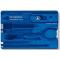 Aussi polyvalente qu'un couteau suisse, de même longueur et de même largeur qu'une carte bancaire, la carte multifonction Swisscard Classic (ici en coloris bleu) a été conçue avec un objectif : vous dépanner à la moindre occasion et vous accompagner en tous lieux, sans vous encombrer. Elle n'a besoin que d'une petite place dans votre portefeuille. Nombre de fonctions : 10. Qualité Victorinox.