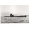 Carte postale avec un sous-marin. Le sous-marin est en mer avec des montagnes en arrière-plan. Le texte sur la carte postale indique "SOUS-MARIN MARSOUIN" et "MARIUS BAR. PHOT. TOULON REPRODUCTION INTERDITE".