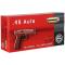 Conçue en 1904 pour un usage militaire en remplacement du 9mm, Pourvue d'une ogive blindée Full Metal Jacket 230gr pour une vitesse de 260m/s, elle développe une énergie cinétique de 503 joules. Cette configuration classique offre à la fois vitesse et pénétration, avec en plus le pouvoir d'arrêt du 45 ACP.