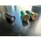 Confectionnées sur base d'étuis percutés de différentes marques, garnis d'un insert en polymère avec une vis inox pour faire du poids. Les cartouches sont ensuite ressorties en demi rond. Je peux également remplacer l'amorce par un tampon en polymère souple.