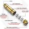 La cartouche est calibrée directement en usine avec une très haute précision, le nombre de vis de réglage ayant été doublé, la plupart des cartouches concurrentes ne possédant que quatre vis de réglage, nous en avons mis huit afin d'avoir un réglage fin et plus résistant dans le temps avec les nombreuses percussions que la cartouche devra endurer. Cet ajout sera particulièrement appréciable pour les utilisateurs visant un usage soutenu de la cartouche dans un but opérationnel.
