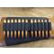 Cartouchière de crosse pour carabine de petit calibre; capacité 14 cartouches. (les munitions cal. 22Magnum, 22LR, 222REM et l'arme présentes sur les photos sont montrées à titre d'exemple et ne font pas partie de la vente); la dernière photo montre la différence entre ce modèle et une cartouchière pour calibre rayé grande chasse. Convient pour tous les petits calibres tels que 17HMR, 22LR, 22Mag, 222REM, 223REM ...