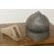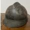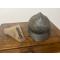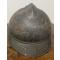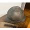 Casque italien Adrian mod. 1915 - 142e régiment d'infanterie . La peinture du casque est pratiquement intacte, tandis que la surface et la calotte métallique présentent plusieurs bosses, visiblement dues au combat ou au champ de bataille.