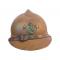 Superbe casque Adrian de général avec une peinture moutarde appliquée sur la peinture bleu horizon d'usine.