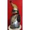 Le cimier est en laiton. Il est orné sur l'avant d'une grenade enflammée surmontée d'une tête de méduse et d'une couronne de laurier. Les côtés sont décorés de godrons, de feuilles d'acanthe et de palmettes. Le "pare-pluie" protégeant le dessus du cimier figure une crinière tressée. Enfin, l'ensemble est surmonté d'un porte-aigrette en laiton stylisé (en forme de lentille aplatie avec une douille) et d'une aigrette de crins écarlates.