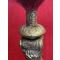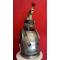 Bon état général de conservation. Très belle bombe en acier. Accident au porte-aigrette (douille en partie désoudée et déformée). Un petit trou et une petite fente peu visibles sur la nuquière. Usure à la coiffe et au bandeau en peau de vache.
