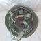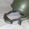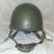 Mentonnière en cuir, fermeture velcro. Serre-tête adaptable, carrés de mousse et grande rondelle de cuire pour assuré le confort du soldat. L'intérieur est un peux poussiéreux mais aucune pièce ne maque et sont toutes en bon état.