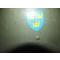 Blasons héraldiques latéraux peints au pochoir. On sent une légère surépaisseur en passant le doigt.
