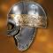 Ce luxueux casque Norseman est du type Gjermundbu (casque à lunettes). Ce casque de luxe serait parfait pour un chef Viking. Ce casque Norseman est fabriqué à la main en acier et en laiton de calibre 18.