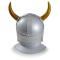 Casque "viking" inspiré de l'imaginaire viking : les vikings ne portèrent des casques à cornes que pour les grandes cérémonies... Livré avec un support en métal.