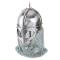 Sa structure en acier de 2 mm d'épaisseur lui confère une robustesse idéale pour les combats d'exhibition et la reconstitution historique. La présence d'une lunette en acier galvanisé renforce la protection du visage, tandis que l'aventail en maille protège la nuque et les côtés du crâne contre les coups et les projectiles.