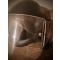 Le casque comporte deux systèmes de fixation de sangle, la visière comporte des rayures et quelques bulles d'air sur le côté entre les écrans de protections empilés.