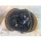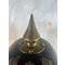 Casque en cuir noir avec garnitures en laiton et pointe démontable.