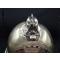 Il a vécu les interventions (voir les coups pris sur la bombe) mais a été décabossé proprement (voir photos) restauration au niveau avant du cimier qui semble ancienne.
