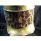 bombe et garnitures en laiton, visière et couvre-nuque doublés de basane, turban en cuir recouvert d'un bandeau en feutre imitant la peau de panthère, marmouset houppette en crin noir, porte-plumet, jugulaires à anneaux en laiton doublés de cuir,