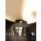 Toile coton blanc cassé, visière noire vernie (cuir synthétique).
