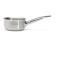 Ustensile de cuisson en acier inoxydable AISI 304 avec bord verseur et fond sandwich, qui le rend compatible avec l’induction et permet une diffusion homogène de la chaleur sur tout le fond de l’ustensile.