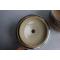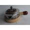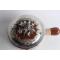 Ancienne et belle casserole en terre vernissée deux tons a décor en application de métal argenté prise en forme d'artichaut et cerclage en rocaille fleurie poinçon d'orfèvre de Victor Saglier (maître orfèvre à Paris de 1840 à 1890) signée en dessous : VS D1, voir photos bon état, un cheveu de cuisson sous le couvercle