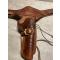 Le cuir est en bon état général, avec une belle patine. Les coutures sont solides et les boucles métalliques fonctionnent parfaitement. L’intérieur du holster est propre, simplement un peu sec, ce qui est normal pour un objet de cet âge.