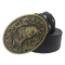 Ceinturon noir, boucle sanglier, laiton vieilli .