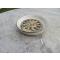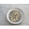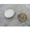 Cendrier vintage de forme circulaire en céramique avec décoration amovible en métal doré patiné "soleil" - FRANCE (Vers 1960-70)