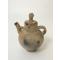 Céramique « Lunda/Chokwe ». La céramique est de couleur beige naturelle, avec un début de noircissement par endroits. Elle est en bon état, à l'exception du couvercle qui a subi quelques dommages au fil du temps. Plusieurs inscriptions sont visibles sur la céramique : « Salumono Mie Zamuy, Jean Bunge Miji ».