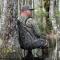 Position assise basse facilitant l’observation discrète en nature.