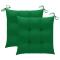 Chaise à bascule avec coussin vert Bois de teck solideCette chaise à bascule en bois sera un choix parfait pour profiter de votre temps libre. Elle est idéale pour usage à l'intérieur et l'extérieur. Fabriquée en bois dur de teck extrêmement durable, cette pièce de meuble en teck a été chevronnée, séchée au four puis finement poncée pour lui donner un aspect très lisse. Le bois de teck est connu pour sa résistance exceptionnelle aux intempéries, ce qui le rend bien plus adapté aux meubles de jardin que tout autre type de bois. Le bois de teck est le choix idéal si vous souhaitez acheter un meuble de jardin durable. Le dossier et l'assise à lattes peuvent offrir un excellent soutien. C'est le meilleur siège pour discuter, lire, regarder la télévision ou simplement vous détendre ! Le coussin inclus est pratique et a une fonction décorative. Maximum 110 kg par siège. ,