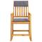 Chaise à bascule avec coussins bois massif d'acaciaCette chaise à bascule en bois sera un choix parfait pour profiter de votre temps libre. Elle est idéale pour l'intérieur et l'extérieur. Bois d'acacia massif : le bois d'acacia massif est un matériau naturel magnifique. Le bois d'acacia un bois dur tropical, qui est dense, robuste et durable.Design berçant : détendez-vous en vous asseyant confortablement tout en profitant d'un mouvement de bercement doux et apaisant.Expérience d'assise confortable : le dossier ajoute un confort d'assise supplémentaire pour la chaise de salon. De plus, les coussins offrent un confort pour votre temps d'assise.Large application : la chaise de relaxation peut être utilisée à l'intérieur ainsi qu'à l'extérieur. La chaise à bascule en bois sera un supplément fabuleux à tout espace de vie. Bon à savoir :Pour faciliter au maximum le montage, chaque produit est livré avec des instructions.