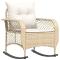 Chaise à bascule de jardin avec coussins beige résine tresséeDétendez-vous et profitez de l'extérieur dans ce confortable chaise à bascule ! Matériau durable : la résine tressée, également connue sous le nom de poly rotin, est un matériau synthétique solide et nécessitant peu d'entretien qui ressemble au rotin naturel. Elle est légère, facile à nettoyer et couramment utilisée pour les meubles d'extérieur en raison de sa durabilité et de ses propriétés de résistance aux intempéries.Balancement apaisant et stabilité : basculez doucement d'avant en arrière sur ce siège de jardin pour une relaxation ultime. Le bas des pieds en métal du fauteuil à bascule d'extérieur est équipé d'une bande en caoutchouc pour augmenter l'adhérence et la stabilité, l'empêchant de basculer pendant l'utilisation.Expérience d'assise confortable : ce mobilier d'extérieur, doté de coussins épais, offre une expérience d'assise confortable.Housse amovible et lavable : le coussin de siège est doté d'une housse amovible pour un lavage et un entretien faciles.Cadre robuste et stable : le cadre en acier enduit de poudre assure la solidité et la stabilité du meuble de jardin pour une utilisation quotidienne à l'extérieur. Bon à savoir :Pour que vos meubles d'extérieur restent beaux, nous vous recommandons de les protéger avec une housse imperméable.
