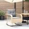 Chaise à bascule de jardin avec coussins beige résine tresséeDétendez-vous et profitez de l'extérieur dans ce confortable chaise à bascule ! Matériau durable : la résine tressée, également connue sous le nom de poly rotin, est un matériau synthétique solide et nécessitant peu d'entretien qui ressemble au rotin naturel. Elle est légère, facile à nettoyer et couramment utilisée pour les meubles d'extérieur en raison de sa durabilité et de ses propriétés de résistance aux intempéries. Balancement apaisant et stabilité : basculez doucement d'avant en arrière sur ce siège de jardin pour une relaxation ultime. Le bas des pieds en métal du fauteuil à bascule d'extérieur est équipé d'une bande en caoutchouc pour augmenter l'adhérence et la stabilité, l'empêchant de basculer pendant l'utilisation. Expérience d'assise confortable : ce mobilier d'extérieur, doté de coussins épais, offre une expérience d'assise confortable. Housse amovible et lavable : le coussin de siège est doté d'une housse amovible pour un lavage et un entretien faciles. Cadre robuste et stable : le cadre en acier enduit de poudre assure la solidité et la stabilité du meuble de jardin pour une utilisation quotidienne à l'extérieur. Bon à savoir : Pour que vos meubles d'extérieur restent beaux, nous vous recommandons de les protéger avec une housse imperméable. ,