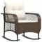 Chaise à bascule de jardin avec coussins marron résine tresséeDétendez-vous et profitez de l'extérieur dans ce confortable chaise à bascule ! Matériau durable : la résine tressée, également connue sous le nom de poly rotin, est un matériau synthétique solide et nécessitant peu d'entretien qui ressemble au rotin naturel. Elle est légère, facile à nettoyer et couramment utilisée pour les meubles d'extérieur en raison de sa durabilité et de ses propriétés de résistance aux intempéries.Balancement apaisant et stabilité : basculez doucement d'avant en arrière sur ce siège de jardin pour une relaxation ultime. Le bas des pieds en métal du fauteuil à bascule d'extérieur est équipé d'une bande en caoutchouc pour augmenter l'adhérence et la stabilité, l'empêchant de basculer pendant l'utilisation.Expérience d'assise confortable : ce mobilier d'extérieur, doté de coussins épais, offre une expérience d'assise confortable.Housse amovible et lavable : le coussin de siège est doté d'une housse amovible pour un lavage et un entretien faciles.Cadre robuste et stable : le cadre en acier enduit de poudre assure la solidité et la stabilité du meuble de jardin pour une utilisation quotidienne à l'extérieur. Bon à savoir :Pour que vos meubles d'extérieur restent beaux, nous vous recommandons de les protéger avec une housse imperméable.