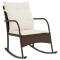 Chaise à bascule de jardin avec coussins marron résine tresséeDétendez-vous et profitez de l'extérieur dans ce confortable chaise à bascule ! Matériau durable : la résine tressée, également connue sous le nom de poly rotin, est un matériau synthétique solide et nécessitant peu d'entretien qui ressemble au rotin naturel. Il est léger, facile à nettoyer et couramment utilisé pour les meubles d'extérieur en raison de sa durabilité et de ses propriétés de résistance aux intempéries.Balancement apaisant : vous pouvez vous balancer doucement sur ce siège de jardin pour vous détendre pendant votre temps libre.Expérience d'assise confortable : ce mobilier d'extérieur, doté de coussins épais, offre une expérience d'assise confortable.Housse amovible et lavable : le coussin de siège est doté d'une housse amovible pour un lavage et un entretien faciles.Cadre robuste et stable : le cadre en acier enduit de poudre assure la solidité et la stabilité du meuble de jardin pour une utilisation quotidienne à l'extérieur. Bon à savoir :Pour que vos meubles d'extérieur restent beaux, nous vous recommandons de les protéger avec une housse imperméable.
