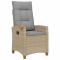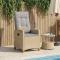 Chaise inclinable avec plateau à thé 62 x 64 x 112 cm polyrotinLa chaise de jardin inclinable, c'est un super ajout pour n'importe quel espace extérieur. Elle combine confort et design moderne pour te permettre de te détendre tout en profitant du beau temps. Son cadre en acier noir avec finition en rotin s'harmonise parfaitement avec la nature. Avec son dossier inclinable et réglable, elle s'adapte à tout, que ce soit pour une sieste ou un moment de partage entre amis. Dossier réglable : Adapte facilement le dossier à plusieurs positions pour un confort sur mesure. Que tu veuilles lire ou juste te détendre, ajuste-le à ta guise et profite de ton moment. Fonction table intégrée : La petite table intégrée est super pratique pour tes boissons, tes livres ou tes lunettes de soleil. Tu peux rester concentré sur la détente sans te lever sans cesse. Tissu en rotin résistant aux intempéries : Fabriquée pour résister, cette chaise en rotin durable protège contre le soleil et la pluie. Elle garde son look et sa solidité tout au long des saisons, parfaite pour l'extérieur. Coussin de siège à double passepoil : Profite d'un confort moelleux avec le coussin en mousse maintenu par des bords qui évitent le glissement. Le coussin est amovible et facile à laver, super pratique pour un coin accueillant. Entretien facilité : Le design pratique simplifie l'entretien. Un simple coup de chiffon humide suffit pour la garder en état, pour que tu puisses te concentrer sur profiter de ton espace extérieur. Bon à savoir : Maximum 110kg par siège