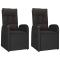 Chaise inclinable de jardin 2pc et coussins Résine tressée NoirNos fauteuils en résine tressée apporteront une touche d'élégance moderne à votre terrasse, balcon ou jardin avec son design sobre et élégant. Fabriqués en résine tressée résistante à l'eau, les fauteuils sont faciles à nettoyer, résistants à l'usure et convient à un usage quotidien. Les cadres en acier enduit de poudre rendent les fauteuils très robustes et durables. Les chaises inclinables vous offrent tout le confort nécessaire. Le dossier s'inclinera en tirant sur le bouton situé sur le côté. Grâce à leur construction légère, les chaises sont faciles à déplacer. Elles sont également livrées avec des coussins hautement confortables et épaississement rembourrés pour un confort ultime. L'assemblage est facile. Remarque : nous vous recommandons de couvrir l'ensemble pendant la pluie, la neige et le gel. Maximum 110 kg par siège. Soyez conscient du risque de feux ouverts et d'autres sources de forte chaleur à proximité du produit. ,