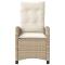 Chaise inclinable de jardin avec coussins beige résine tresséeDétendez-vous et profitez de l'extérieur dans cette chaise de jardin inclinable confortable ! Matériau durable : la résine tressée, également connue sous le nom de poly rotin, est un matériau synthétique solide et nécessitant peu d'entretien qui ressemble au rotin naturel. Il est léger, facile à nettoyer et couramment utilisé pour les meubles d'extérieur en raison de sa durabilité et de ses propriétés de résistance aux intempéries. Dossier réglable : ce siège de jardin est doté d'une poignée. Vous pouvez régler le dossier dans n'importe quelle position en tirant sur la poignée et le remettre rapidement dans sa position initiale. Expérience d'assise confortable : ce mobilier d'extérieur, doté de coussins épais, offre une expérience d'assise confortable. Housse amovible et lavable : ces coussins de siège sont dotés de housses amovibles pour un lavage et un entretien faciles. Cadre robuste et stable : le cadre en acier enduit de poudre assure la solidité et la stabilité du meuble de jardin pour une utilisation quotidienne à l'extérieur. Bon à savoir : Pour que vos meubles d'extérieur restent beaux, nous vous recommandons de les protéger avec une housse imperméable. Maximum 110 kg par siège. Soyez conscient du risque de feux ouverts et d'autres sources de forte chaleur à proximité du produit. ,